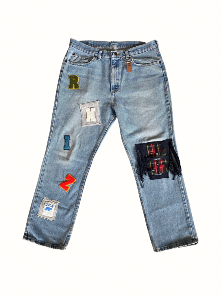 Shop › University Blues - Denim Image 1 of 6 Image 2 of 6 Image 3 of 6 Image 4 of 6 Image 5 of 6 Image 6 of 6 University Blues - Denim $150.00 (1/1) heavyweight denim pants. Fits 36/38x39, Inseam 28. Genderless. Add To Cart Added! (1/1) heavyweight denim pants. Fits 36/38x39, Inseam 28. Genderless.